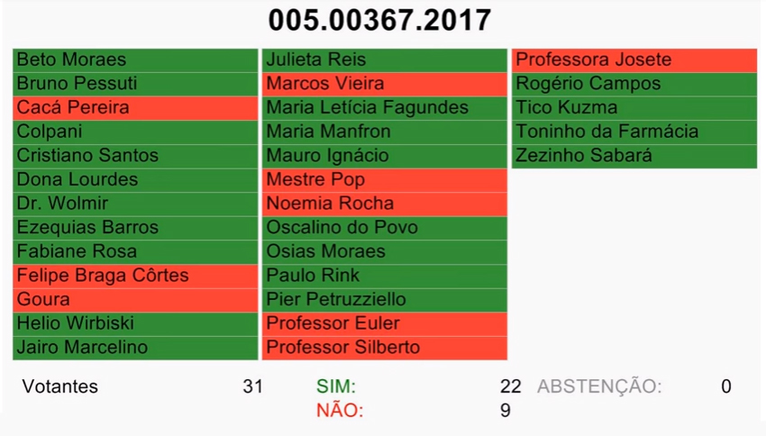Por 22 votos a favor da mudança e 9 contrários, o legislativo municipal decreta